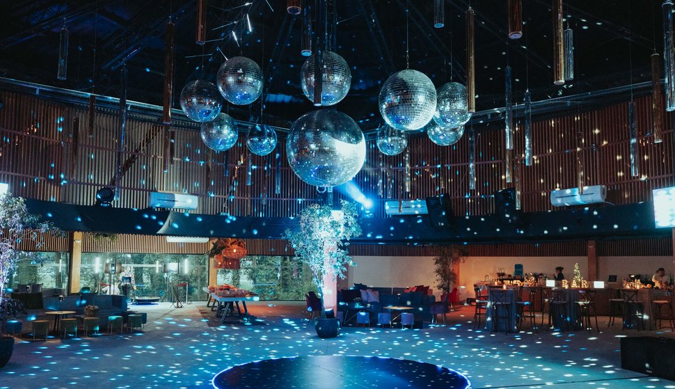 Su pista de baile central, visible desde todo el salón, mantiene a todos los comensales en todo momento integrados al evento.